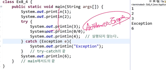 + catch 블럭이 없었다면 비정상종료가 되었을 것.