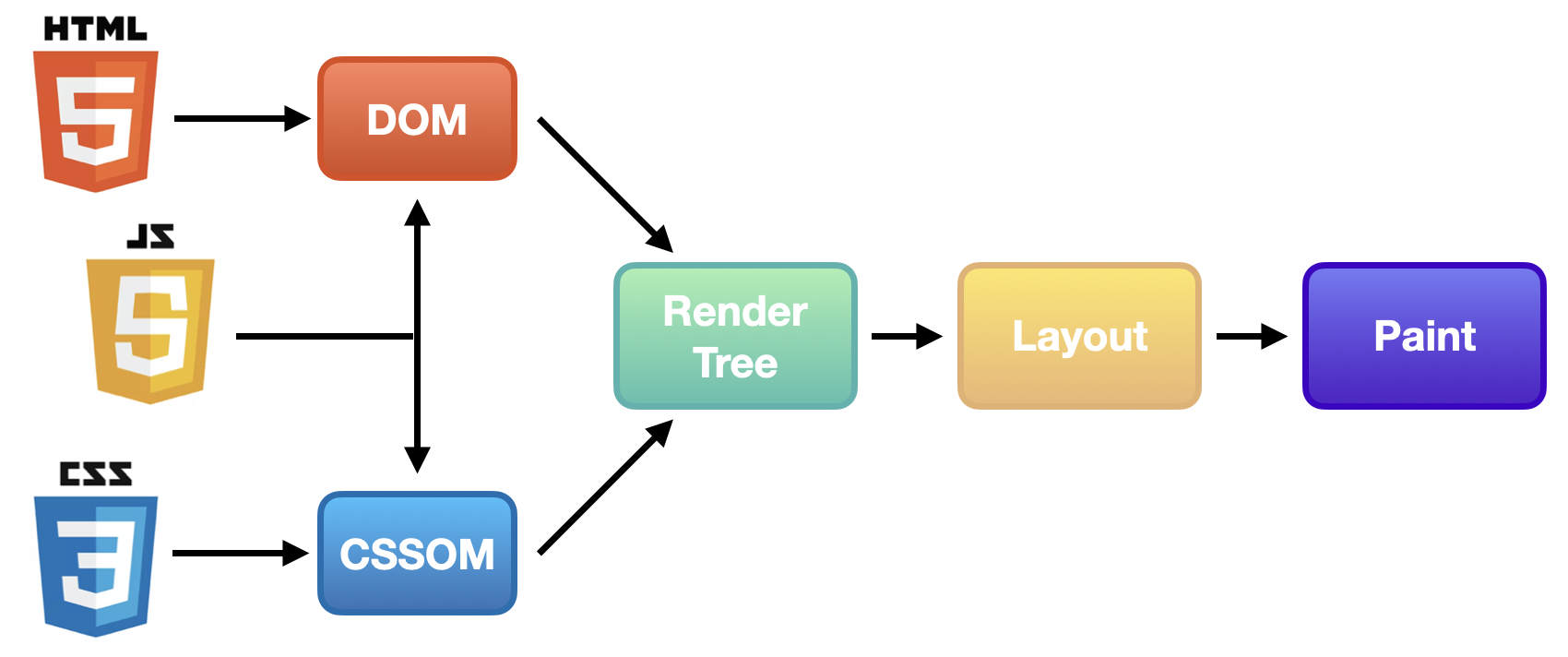 렌더링이란, 이 HTML, CSS, JS로 작성된 코드들을 화면에 실제로 보이게 그려주는 과정을 말해요. 이때 브라우저는 다음과 같은 순서를 따릅니다: