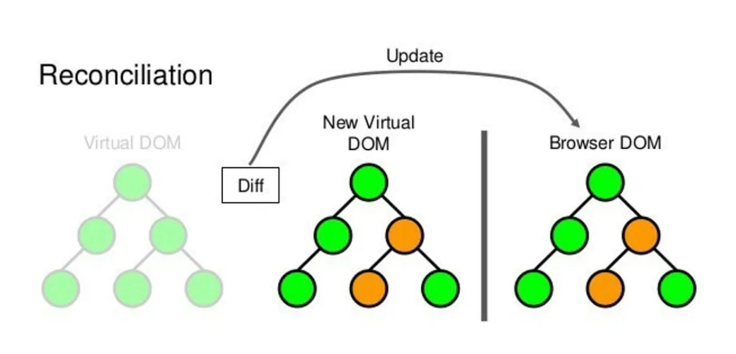 - 이전 Virtual DOM과 새 Virtual DOM을 비교(Diffing) 함