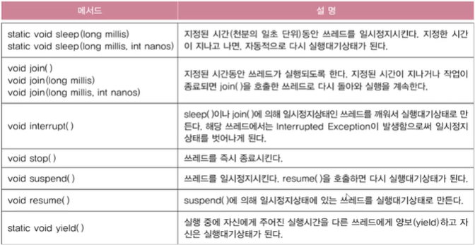 - 쓰레드의 실행을 제어할 수 있는 메서드가 제공된다.