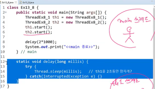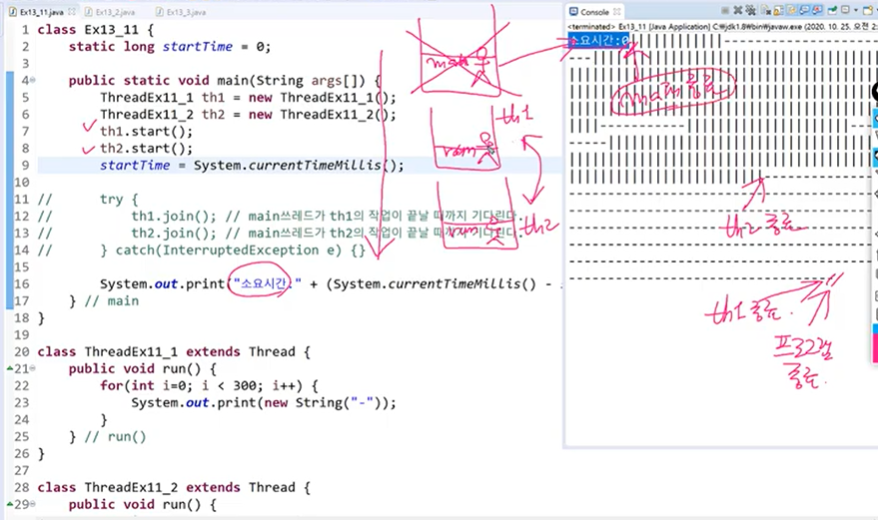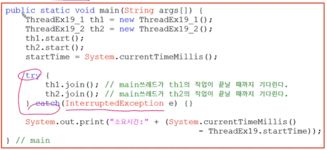 th1.join은 main쓰레드의 th1작업이 끝날때 까지 기다리는 메서드!