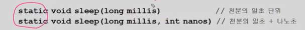 sleep - 잠들게하기. 즉 일시정지 시킨다