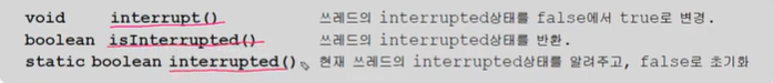 *interrupted는 static 메서드이므로 th1.interrupted라고 해도 main쓰레드 인터럽트 값을 반환해줘 false값이 나온다*