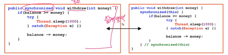- synchronized를 메서드 앞에 붙여주면 다 임계영역이 된다.
