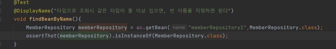 그래서 타입으로 조회시 같은 타입이 둘 이상 있으면 빈 이름을 위처럼 지정해주면 된다.
