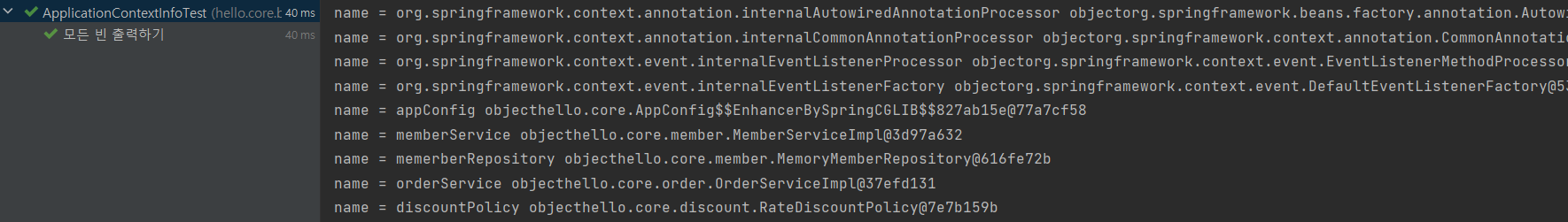 - 그래서 모든 자바 객체의 최고 부모님 Object 타입으로 조회하면 모든 스프링 빈을 조회한다.