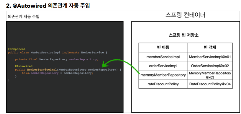 제공한다. - 또 의존관계도 자동으로 주입하는 @Autowired 라는 기능도 제공한다.