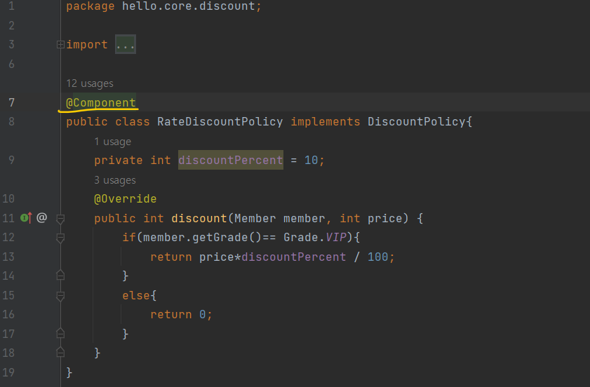 - 이전에 AppConfig에서는 @Bean 으로 직접 설정 정보를 작성했고, 아래 AppConfig처럼 의존관계도 직접 명시했다.