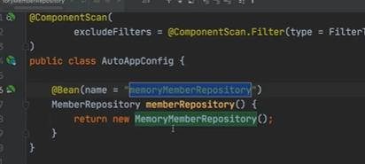 memoryMemberRepository라는 Bean을 수동으로 등록했다.