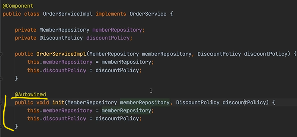 - 한번에 여러 필드를 주입 받을 수 있다.일반적으로 잘 사용하지 않는다.