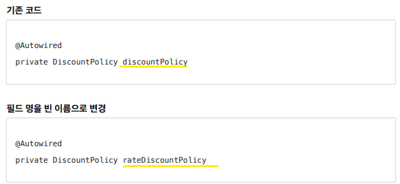 fixDiscountPolicy 스프링 빈을 찾아서 실행한다. 물론 “rateDiscountPolicy”가 넘어오면