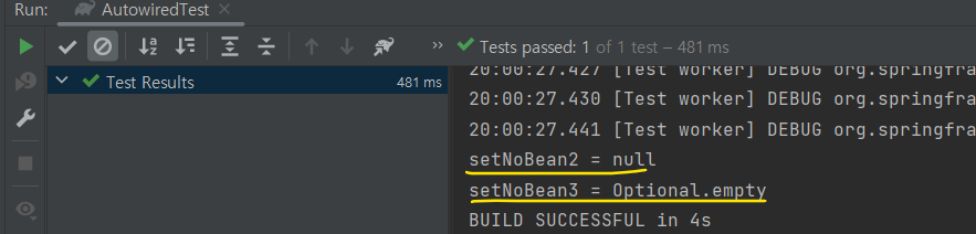 3번째 방법은 자동 주입할 대상이 없을때 Optional.empty가 입력되는 것을 확인할 수 있다.