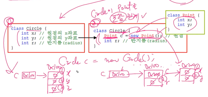 circle이 클래스 point를 참조변수로 선언한 것.