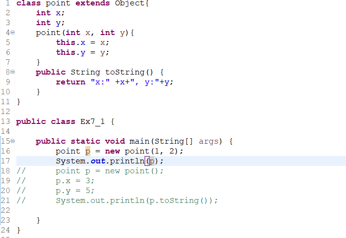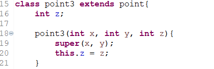 자동으로 super();이 생성되어 point()를 호출하게 되는데 point에는 기본 생성자인 point()가 없고 point(int x, int y)만 있다.