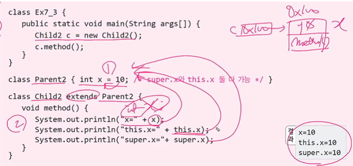 조상멤버의 x // super.x