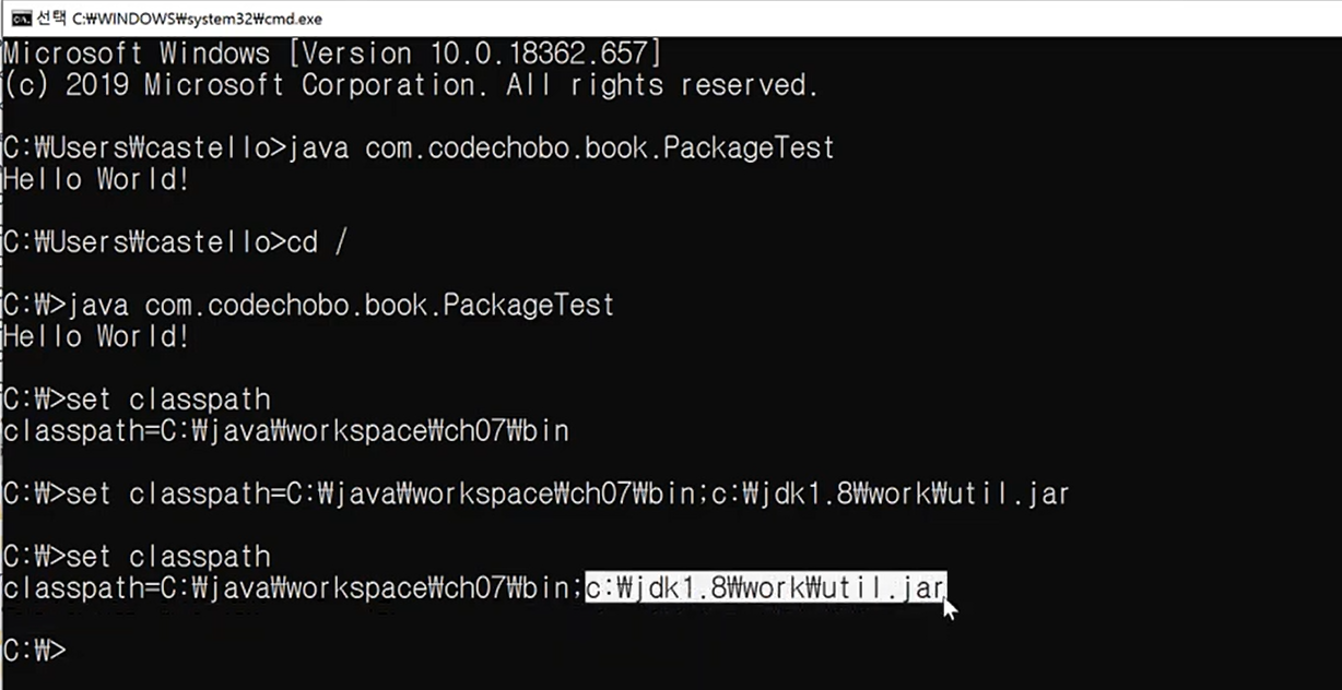 - classpath(환경변수)에 패키지 루트를 등록해야함