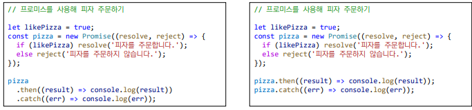 - Promise객체는 if(likePizza)조건의 결과에 따름