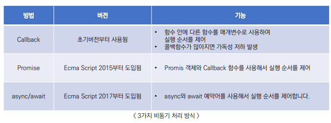 자바스크립트에서 비동기 처리시 사용하는 방법 3가지